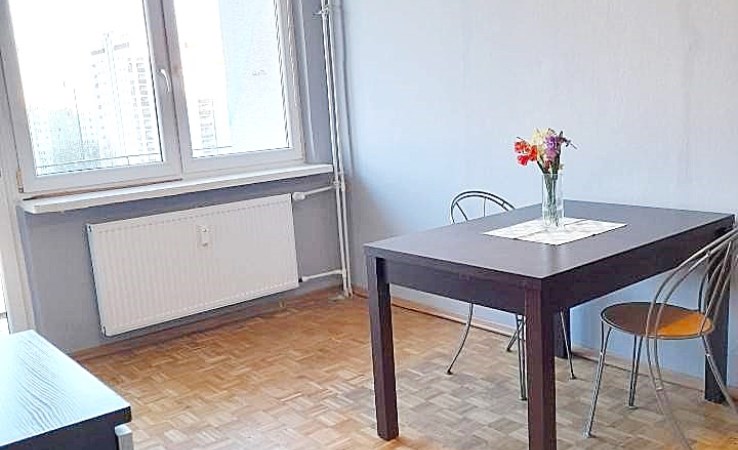Mieszkanie na 9 piętrze w budynku z lat 70-tych.